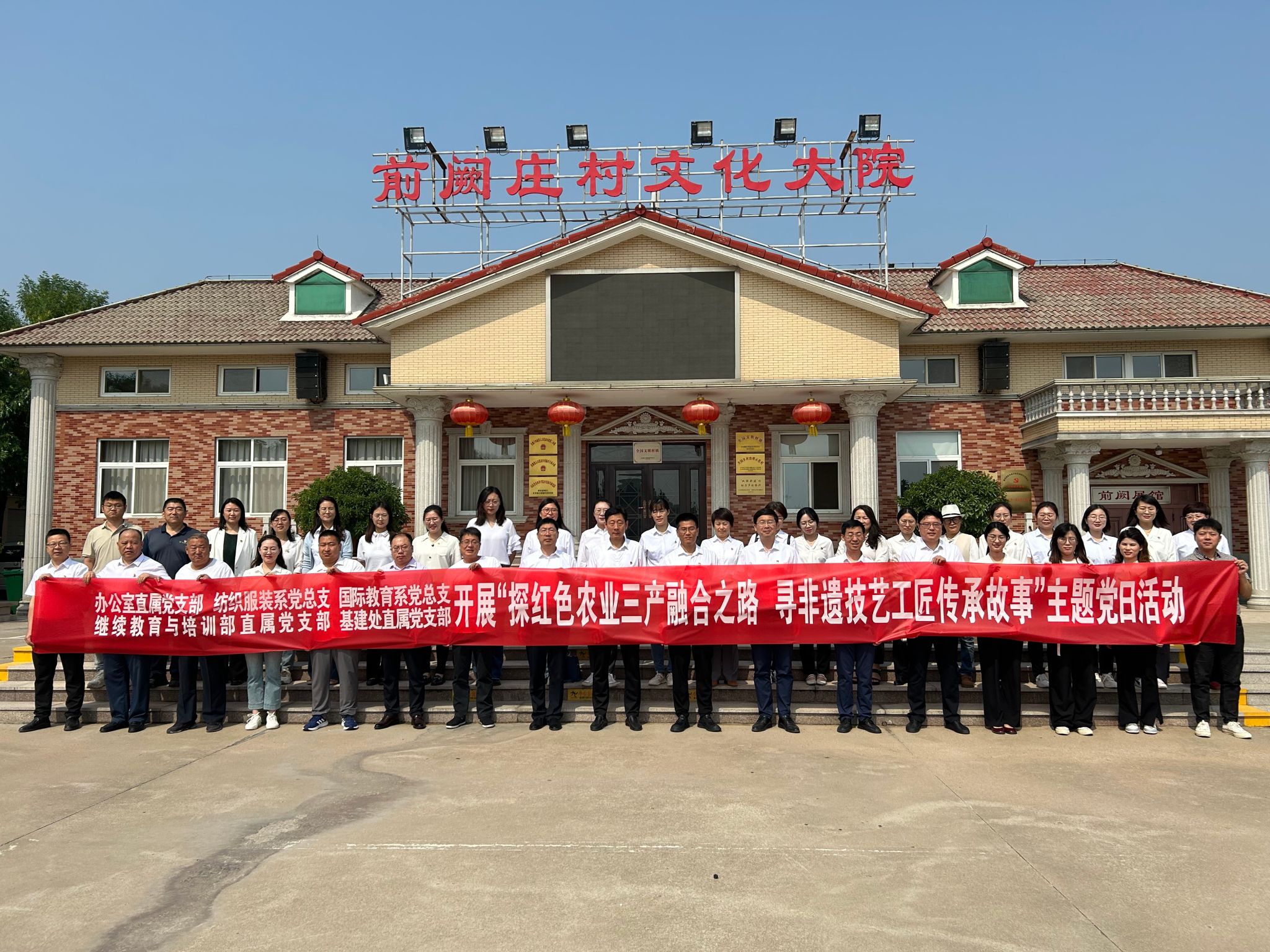 5月21日上午,bw必威西汉姆联党总支、办公室直属党支部、国际教育系党支部、继续教育与培训部直属党支部、基建处直属党支部近50名党员赴前阙庄村红色文化展馆和杨家埠中潍年画展示馆联合开展主题党日活动。