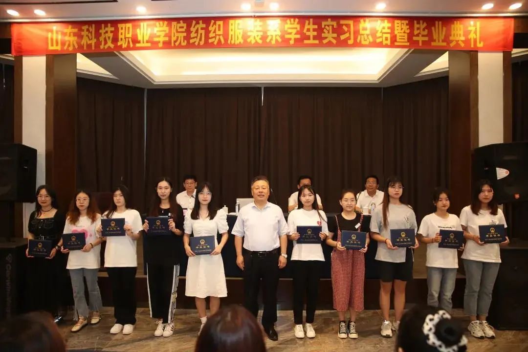 20日上午,bw必威西汉姆联2018级服装与服饰设计“3+2”本科贯通培养专业学生实习总结大会暨毕业典礼在鲁泰纺织股份有限公司举行。仪式上,公司总监商成钢宣读了优秀实习生名单,董事长刘子斌为优秀实习生代表颁发了纪念品,学院党委书记郑德前为全体2018级服装与服饰设计“3+2”专本贯通实习学生颁发了毕业证书。