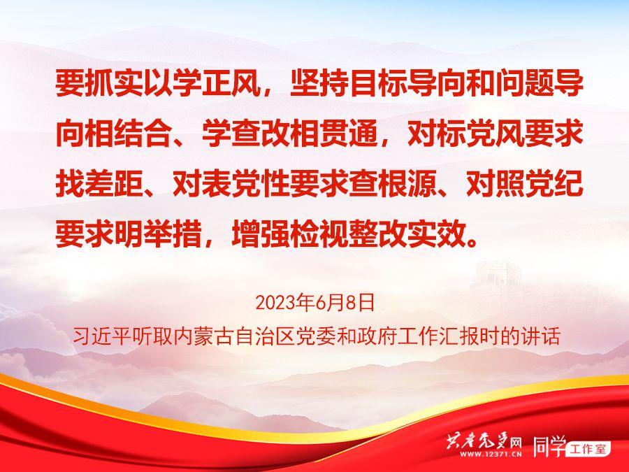2023年6月,习近平在内蒙古考察时强调,通过集中教育推动全党以自我革命精神解决党风方面的突出问题,是一条重要历史经验。人民群众看主题教育是否有成效,最直观的感受是看党风方面存在的问题是否得到解决、党员干部作风是否有明显进步。