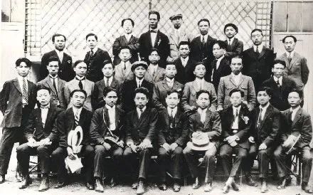 (青年团第一届中央执行委员会委员。上左为施存统(书记),右为张太雷,下左为高君宇,中为蔡和森,右为俞秀松。)