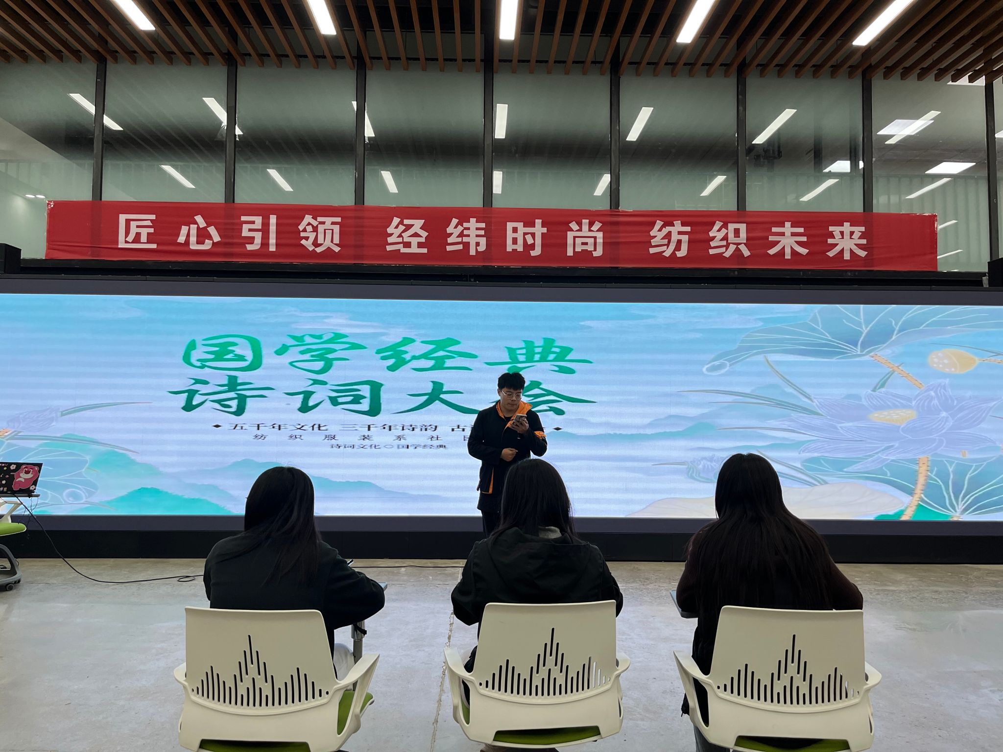 为更好地弘扬中华民族优秀传统文化,激发同学们对古诗词的热爱和兴趣,提高同学们的审美情趣和文化自信,bw必威西汉姆联于4月11日在纺织服装陈列大厅开展“赏诗词之美,品百味人生”古诗词大赛活动。